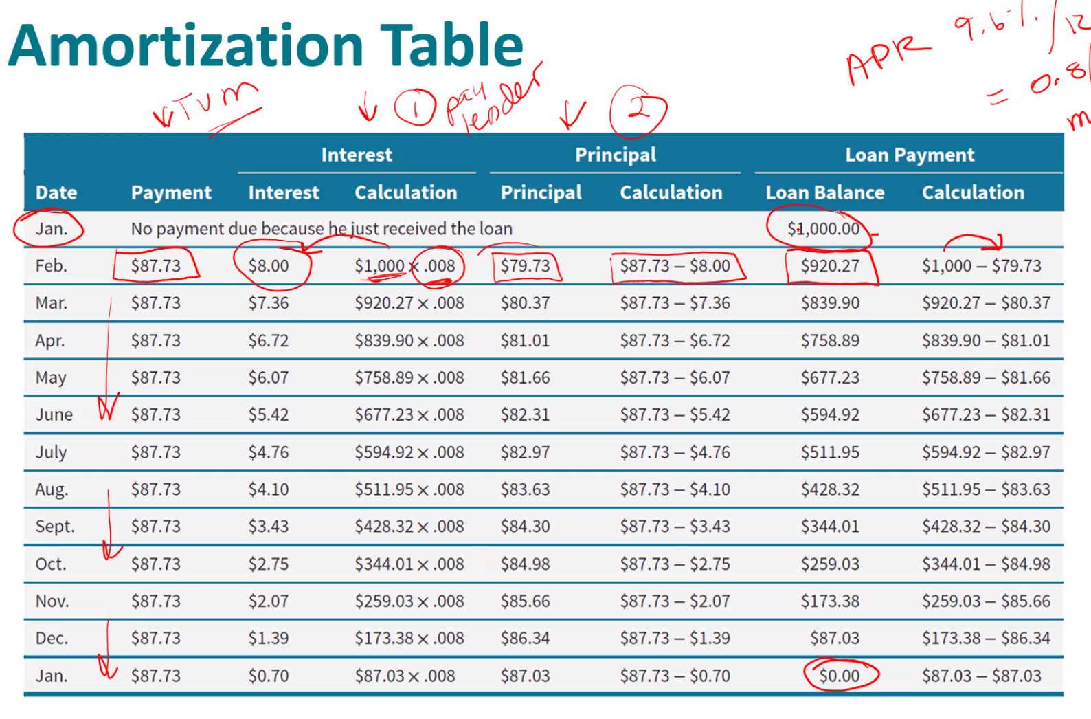 • Amortization table